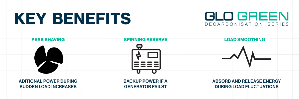 Spinning reserve – delivering instant backup power in case of generator failure, enabling fewer generators to run while maintaining redundancy