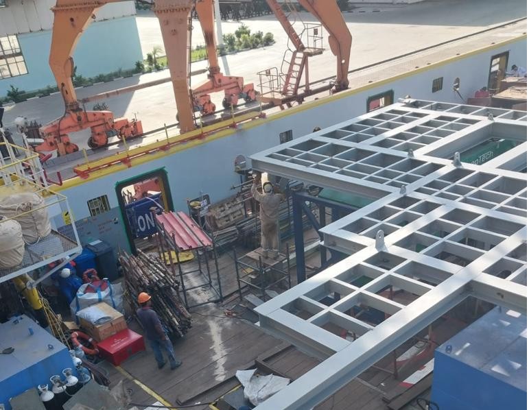 This information was then passed on to our design team, which developed the structural drawings for Class approval and the detailed drawings with final MTOs. At this point, the structure was divided in three modules to allow the prefabrication phase to overlap with the design and engineering phase.